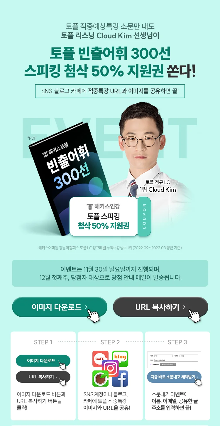 1) 고우해커스 토플 적중특강 영상 소문내기 이벤트 신청에 따른 본인 확인, 혜택 발송, 안내 및 관련